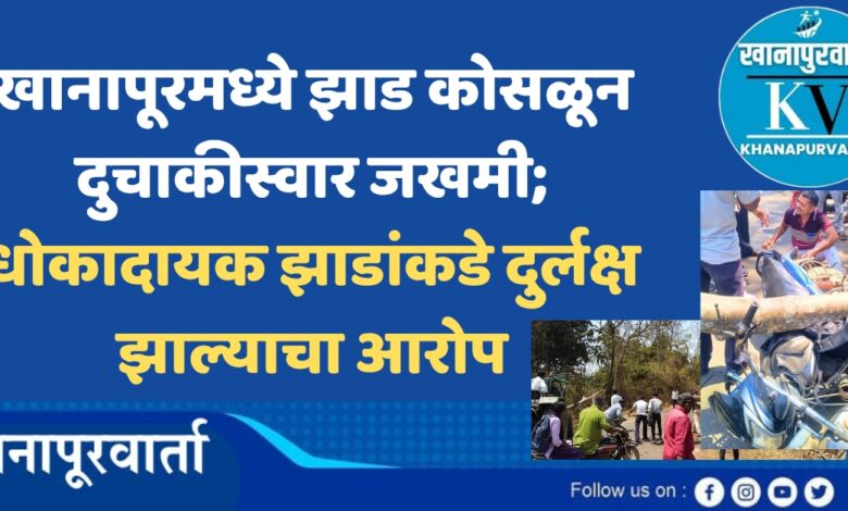 खानापूरमध्ये झाड कोसळून दुचाकीस्वार जखमी; धोकादायक झाडांकडे दुर्लक्ष झाल्याचा आरोप | ಖಾನಾಪುರದಲ್ಲಿ ಮರ ಬಿದ್ದು ಬೈಕ್ ಸವಾರ ಗಾಯ; ಅಪಾಯಕಾರಿ ಮರಗಳ ತೆರವಿಗೆ ಆಗ್ರಹ
