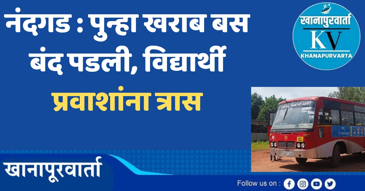 खानापूर तालुक्यातील खराब बसेसचा प्रश्न कायम असल्याचे पुन्हा एकदा स्पष्ट झाले. काल सकाळी नंदगड येथे कुंभार्डा बस अचानक बंद पडल्याने विद्यार्थी व प्रवाशांना मोठ्या अडचणींचा सामना करावा लागला.
