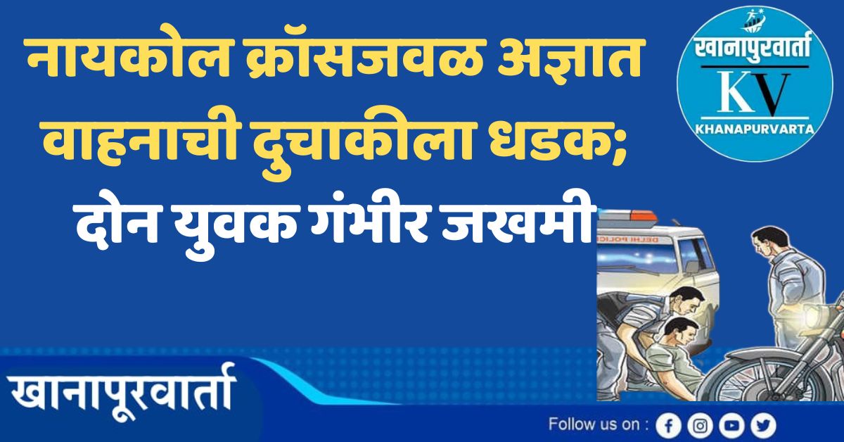 खानापूर: नायकोल क्रॉसजवळ अज्ञात वाहनाने दुचाकीला जोरदार धडक दिल्याने दोन युवक गंभीर जखमी झाल्याची घटना शनिवारी रात्री सुमारे 11 वाजण्याच्या सुमारास घडली.