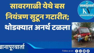 सावरगाळी येथे बस नियंत्रण सुटून गटारीत; थोडक्यात अनर्थ टळला| ಸಾವರ್ಗಾಳಿ ಫಾಟದಲ್ಲಿ ಬಸ್ ಗಟಾರಿಯಲ್ಲಿ ಸಿಲುಕಿತು; ಅನಾಹುತ ತಪ್ಪಿತು