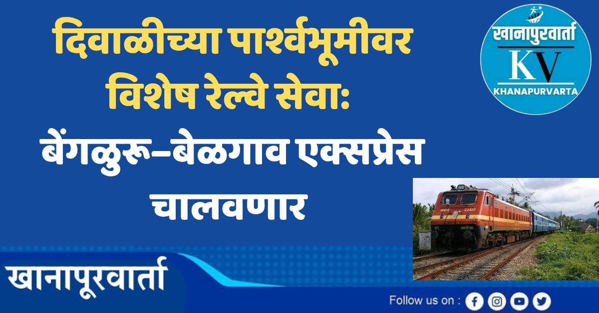 दिवाळीच्या पार्श्वभूमीवर विशेष रेल्वे सेवा: बेंगळुरू–बेळगाव एक्सप्रेस चालवणार | ದೀಪಾವಳಿ ಪ್ರಯುಕ್ತ ಬೆಂಗಳೂರು–ಬೆಳಗಾವಿ ನಡುವೆ ವಿಶೇಷ ರೈಲು ಸೇವೆ