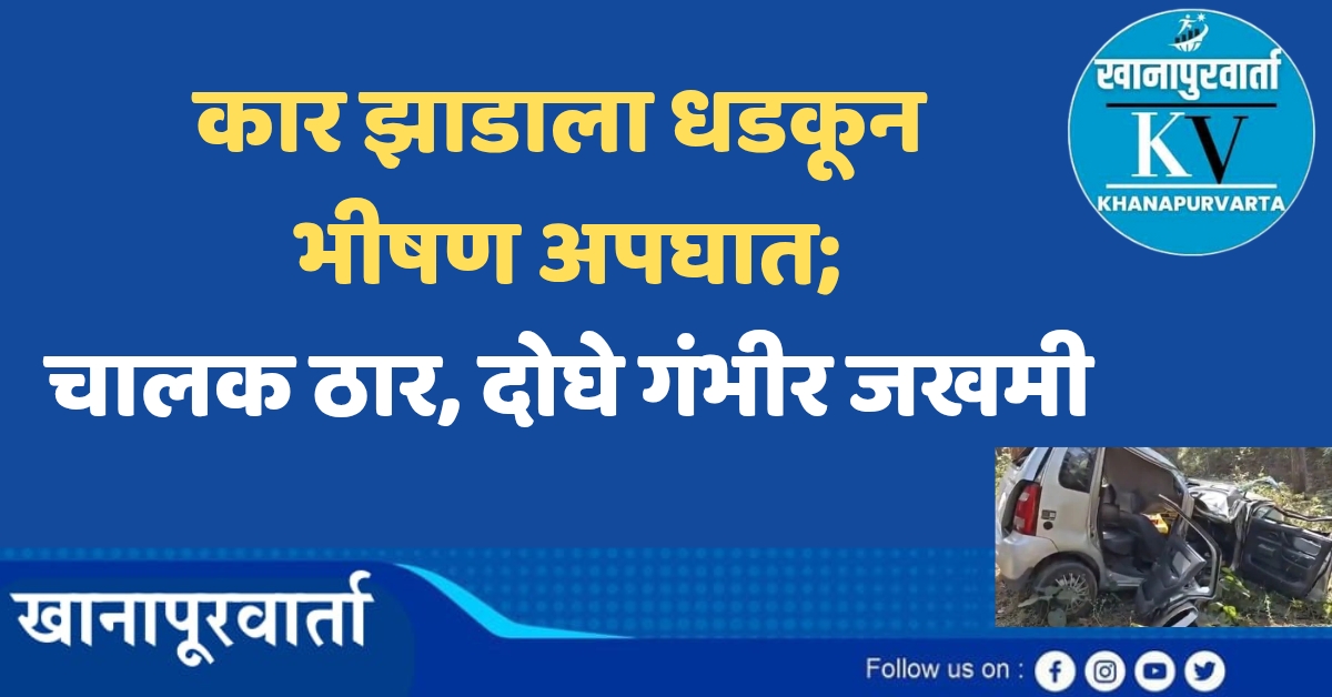 कार झाडाला धडकून भीषण अपघात; चालक ठार, दोघे गंभीर जखमी | ವ್ಯಾಗನರ್ ಕಾರು ಮರಕ್ಕೆ ಡಿಕ್ಕಿ; ಚಾಲಕ ಸ್ಥಳದಲ್ಲೇ ಮೃತ, ಇಬ್ಬರು ಗಂಭೀರ ಗಾಯ