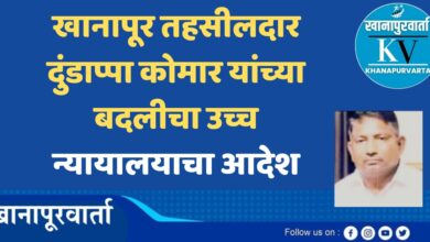 खानापूर: खानापूरचे तहसीलदार दुंडाप्पा कोमार यांची बदली करण्यात यावी, असा आदेश कर्नाटक उच्च न्यायालयाच्या धारवाड खंडपीठातील डबल बेंचने दिला आहे.…