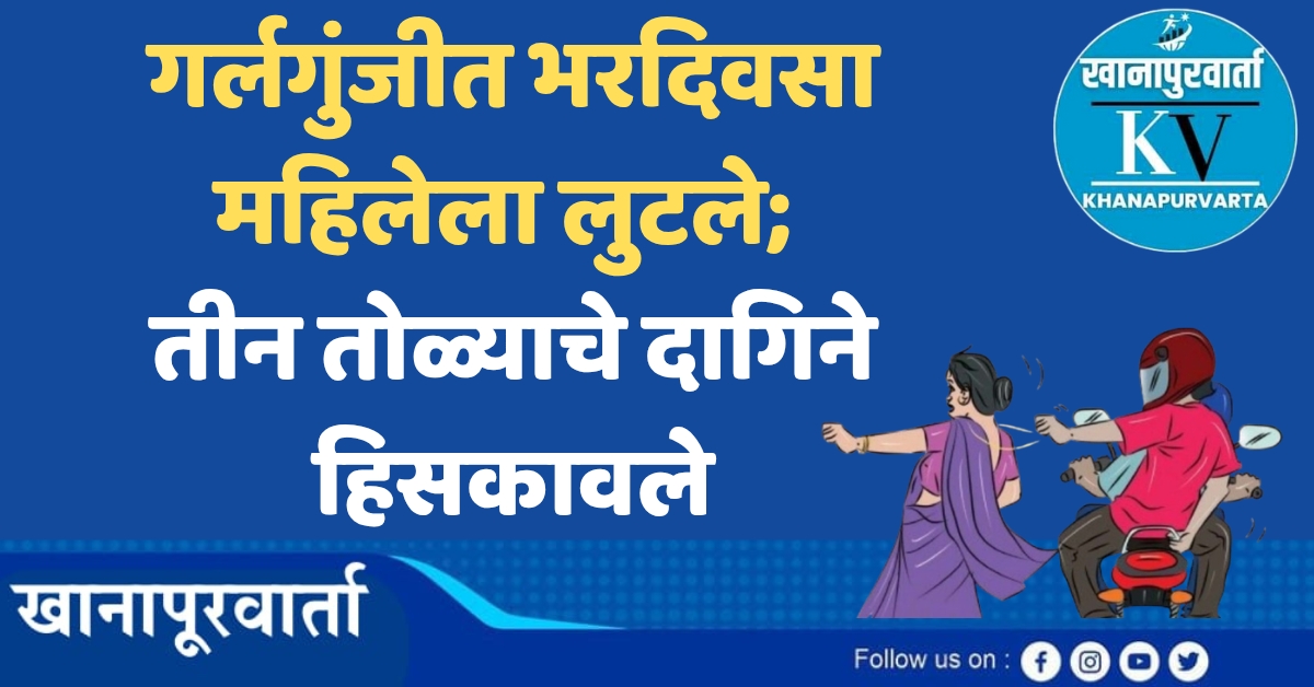 गर्लगुंजी येथील कलमेश्वर मंदिर परिसरात मंगळवारी (दि. ३०) दुपारी साडेतीनच्या सुमारास दुचाकीवरून आलेल्या दोघा भामट्यांनी एका महिलेला लुटून तीन तोळ्याचे दागिने हिसकावल्याची धक्कादायक घटना घडली.