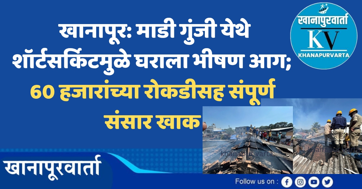 ಖಾನಾಪುರ ತಾಲೂಕಿನ ಮಾಡೀ ಗುಂಜಿ ಗ್ರಾಮದಲ್ಲಿ ಅತ್ಯಂತ ಹೃದಯವಿದ್ರಾವಕ ಘಟನೆಯೊಂದು ಸಂಭವಿಸಿದೆ. ಮಧ್ಯಾಹ್ನದ ಸುಮಾರಿಗೆ ಸಂಭವಿಸಿದ ಶಾರ್ಟ್ ಸರ್ಕ್ಯೂಟ್‌ನಿಂದಾಗಿ ಸ್ಥಳೀಯ ನಿವಾಸಿ ಶಂಕರ್ ಘಾಡಿ ಎಂಬುವವರ ಮನೆಗೆ ಭೀಕರ ಬೆಂಕಿ ತಗುಲಿದೆ. ಈ ದುರಂತದಲ್ಲಿ ಇಡೀ ಮನೆ ಶೇ. 99ರಷ್ಟು ಸುಟ್ಟು ಕರಕಲಾಗಿದ್ದು, ಘಾಡಿ ಕುಟುಂಬವು ಲಕ್ಷಾಂತರ ರೂಪಾಯಿ ಮೌಲ್ಯದ ಆಸ್ತಿಯನ್ನು ಕಳೆದುಕೊಂಡಿದೆ.