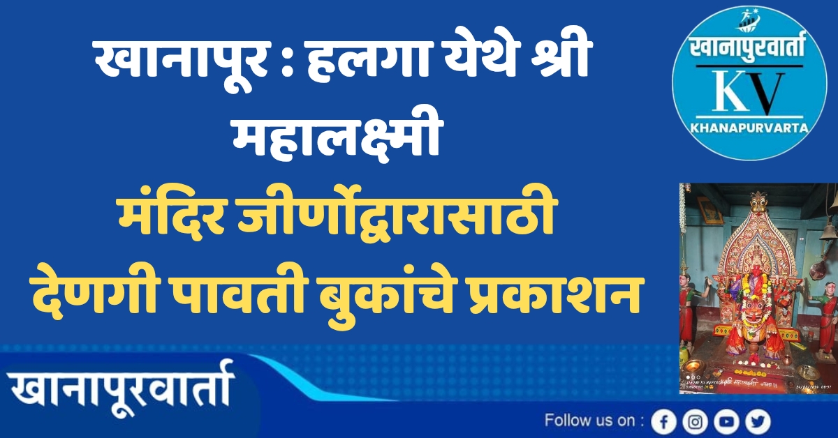 खानापूर : हलगा (ता. खानापूर) येथे श्री महालक्ष्मी मंदिराच्या जीर्णोद्वाराचे काम हाती घेण्यात आले असून त्यासाठी आवश्यक निधी संकलनासाठी देणगी पावती बुक प्रकाशित करण्यात येणार आहे.