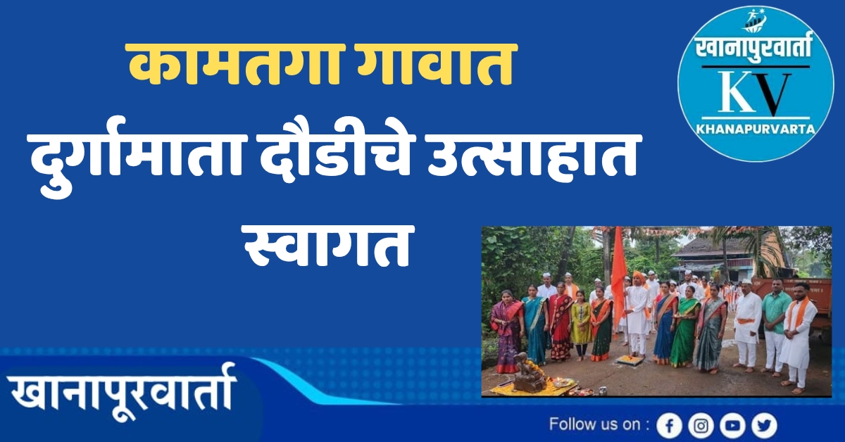 कामतगा : नवरात्र उत्सवाच्या निमित्ताने सुरू असलेल्या गुंजी दुर्गामाता दौडीचे आज (२६ सप्टेंबर) कामतगा गावात उत्साहपूर्ण स्वागत करण्यात आले. गावकऱ्यांनी पारंपरिक वेशभूषेत, आरती करून जयघोषांच्या वातावरणात दौडीचे स्वागत करून गावात धार्मिक आणि भक्तीमय वातावरण निर्माण केले.
