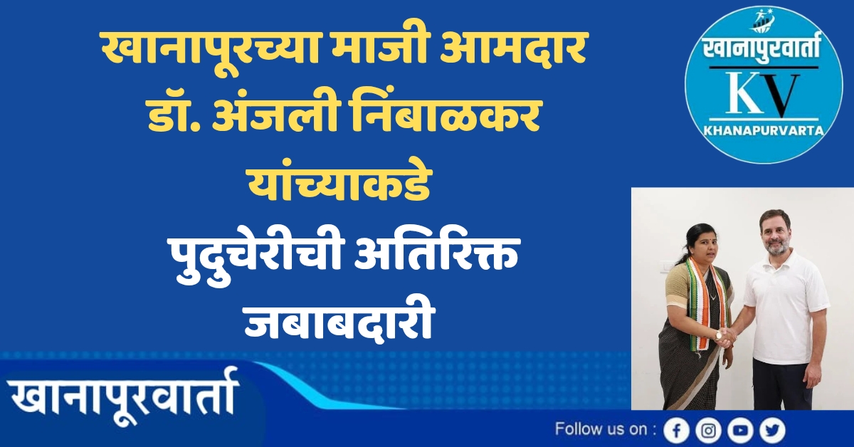 खानापूरच्या माजी आमदार तथा डॉ. अंजली हेमंत निंबाळकर यांच्याकडे गोव्यापाठोपाठ आता पुदुचेरीचीही अतिरिक्त जबाबदारी सोपविण्यात आली आहे. All India Congress Committee (एआयसीसी)ने याबाबत आज प्रसारमाध्यमांना अधिकृत माहिती दिली.