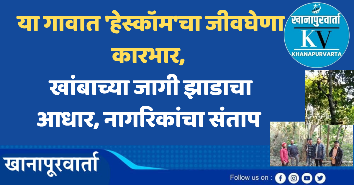 या गावात ‘हेस्कॉम’चा जीवघेणा कारभार; खांबाच्या जागी झाडाचा आधार | ಖಾನಾಪುರ: ನೇರಸಾ ಪಂಚಾಯತ್ ವ್ಯಾಪ್ತಿಯ ಪಾಸ್ತೋಲಿ ಗ್ರಾಮದಲ್ಲಿ ಹೆಸ್ಕಾಂ ನಿರ್ಲಕ್ಷ್ಯ