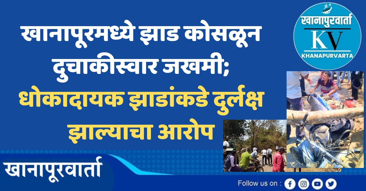 खानापूर : खानापूरहून जांबोटीला जाणारा मुख्य रस्ता हा दररोज हजारो पर्यटक आणि स्थानिक नागरिकांच्या वर्दळीचा मार्ग मानला जातो. मात्र, या रस्त्यावर धोकादायक झाडांकडे दुर्लक्ष झाल्यामुळे आज शानाया गार्डनजवळ दुचाकीस्वारावर झाड कोसळून गंभीर अपघात घडल्याची घटना समोर आली आहे.