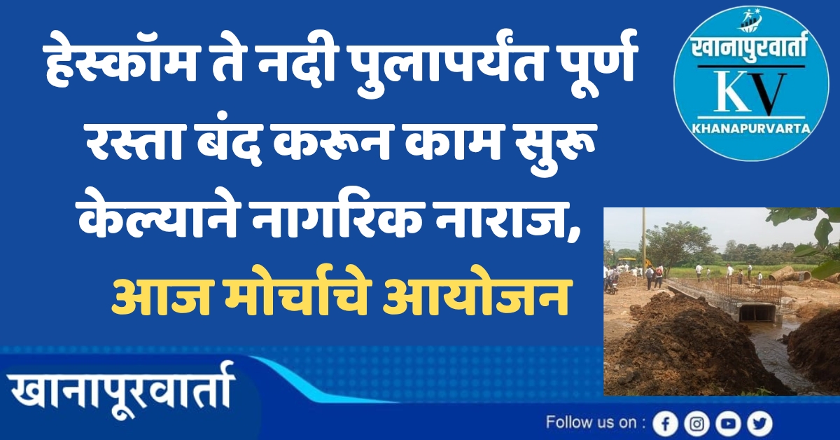 हेस्कॉम ते नदी पुलापर्यंत पूर्ण रस्ता बंद करून काम सुरू केल्याने नागरिक नाराज, आज मोर्चाचे आयोजन ಹೆಸ್ಕಾಂ ಕಚೇರಿಯಿಂದ ನದಿ ಸೇತುವೆಯವರೆಗೆ ಕೆಲಸ — ನಾಗರಿಕರು ಅಸಮಾಧಾನ ವ್ಯಕ್ತಪಡಿಸಿದರು