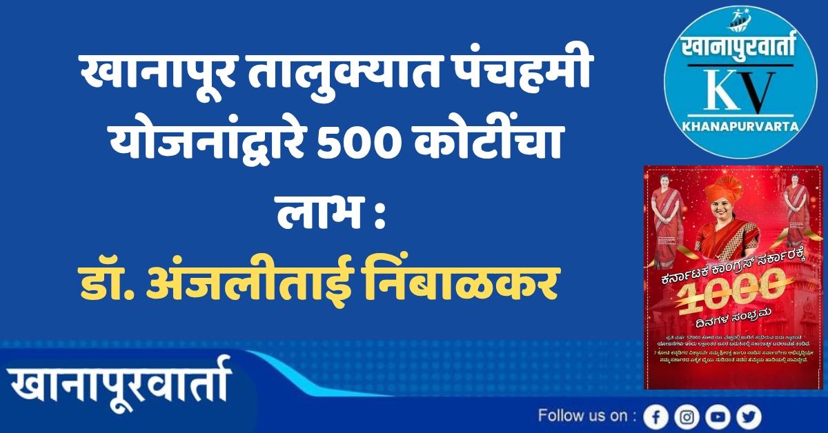 खानापूर तालुक्यात पंचहमी योजनांद्वारे 500 कोटींचा लाभ : डॉ. अंजलीताई निंबाळकर | ಖಾನಾಪುರ ತಾಲ್ಲೂಕಿಗೆ ಪಂಚಹಮಿ ಯೋಜನೆಗಳಿಂದ 500 ಕೋಟಿ ರೂ. ಲಾಭ : ಡಾ. ಅಂಜಲಿತಾಯಿ ನಿಂಬಾಳ್ಕರ್