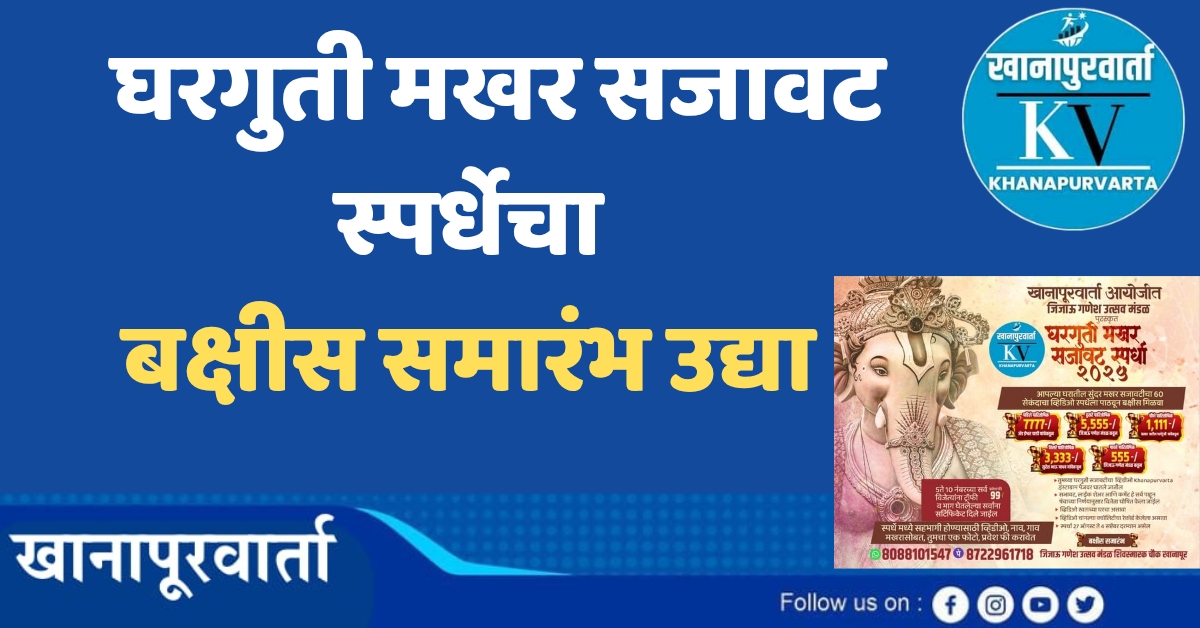 खानापूर: खानापूवार्ता आयोजित व जिजाऊ गणेश उत्सव मंडळ पुरस्कृत घरगुती मखर सजावट स्पर्धेचा बक्षीस समारंभ उद्या (3 सप्टेंबर) सायं. 5 वाजता पार पडणार आहे. काही कारणास्तव हा समारंभ नियोजित तारखेच्या एक दिवस आधी आयोजित करण्यात आला आहे.