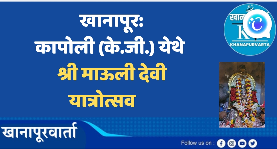 खानापूर तालुक्यातील कापोली (के.जी.) येथे ग्रामदेवता श्री माऊली देवी यांचा सालाबादप्रमाणे भव्य यात्रोत्सव शुक्रवार, दि. 23 जानेवारीपासून मंगळवार, दि. 27 जानेवारी 2026 पर्यंत आयोजित करण्यात आला आहे. या यात्रोत्सवाच्या पार्श्वभूमीवर विविध धार्मिक, सामाजिक व क्रीडा कार्यक्रमांचे आयोजन करण्यात आले आहे.