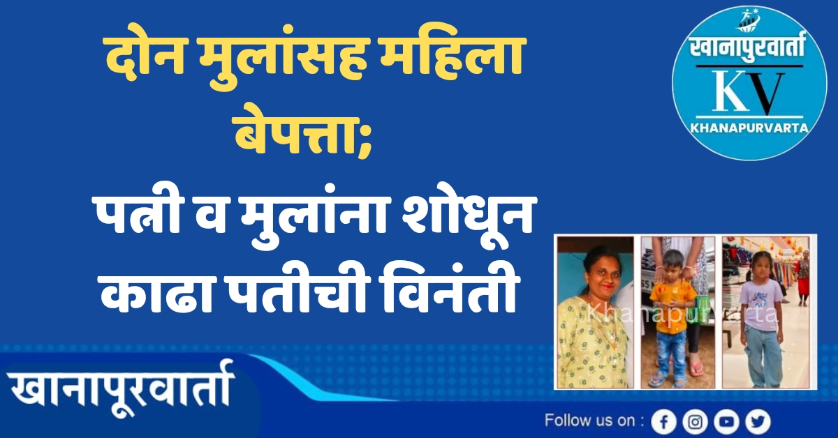 खानापूर: दोन मुलांसह महिला बेपत्ता; पत्नी व मुलांना शोधून काढा पतीची विनंती | ಖಾನಾಪುರ: ಎರಡು ಮಕ್ಕಳೊಂದಿಗೆ ಮಹಿಳೆ ನಾಪತ್ತೆ; ನನ್ನ ಪತ್ನಿ ಮತ್ತು ಮಕ್ಕಳನ್ನು ಹುಡುಕಿ ಕೊಡಿ – ಪತಿಯ ಮನವಿ