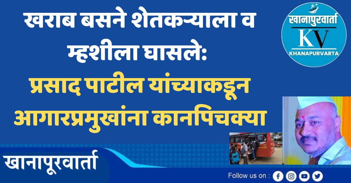खराब बसने शेतकऱ्याला व म्हशीला घासले: प्रसाद पाटील यांच्याकडून आगारप्रमुखांना कानपिचक्या ಖಾನಾಪುರ: ಬಸ್ ದುರಸ್ತಿಯಲ್ಲಿ ನಿರ್ಲಕ್ಷ್ಯ