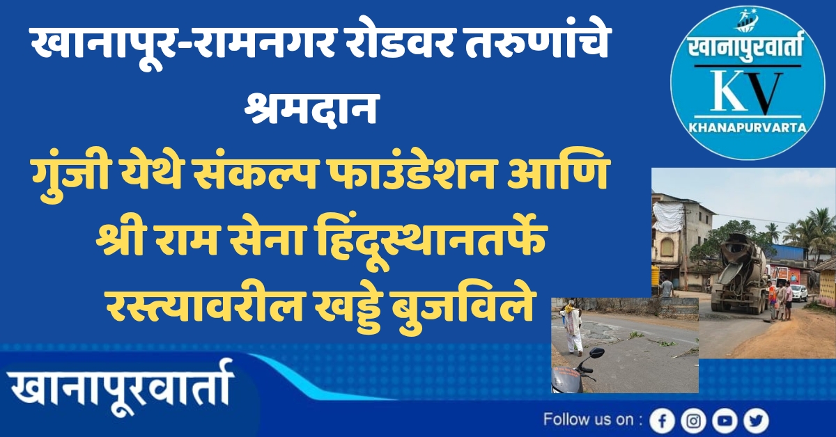 खानापूर: “बदलाची वाट पाहू नका, स्वतः बदल घडवा” हा मंत्र उरात जपून खानापूर तालुक्यातील गुंजी येथे सामाजिक बांधिलकीचे दर्शन घडले आहे. खानापूर–रामनगर रस्त्याची झालेली दुरवस्था आणि वाढते अपघात लक्षात घेता, संकल्प फाउंडेशन आणि श्री राम सेना हिंदूस्थान माडीगुंजी संघटनेच्या वतीने श्रमदानातून रस्त्यावरील खड्डे बुजविण्याचा स्तुत्य उपक्रम राबविण्यात आला.