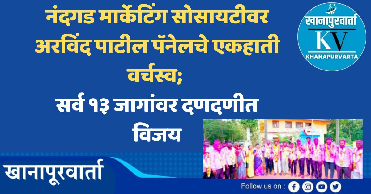 खानापूर तालुका मार्केटिंग सोसायटीच्या नुकत्याच पार पडलेल्या पंचवार्षिक निवडणुकीत माजी आमदार अरविंद पाटील यांच्या नेतृत्वाखालील पॅनेलने सर्व १३ जागा जिंकत सोसायटीवर पुन्हा एकदा आपले एकहाती वर्चस्व सिद्ध केले आहे.